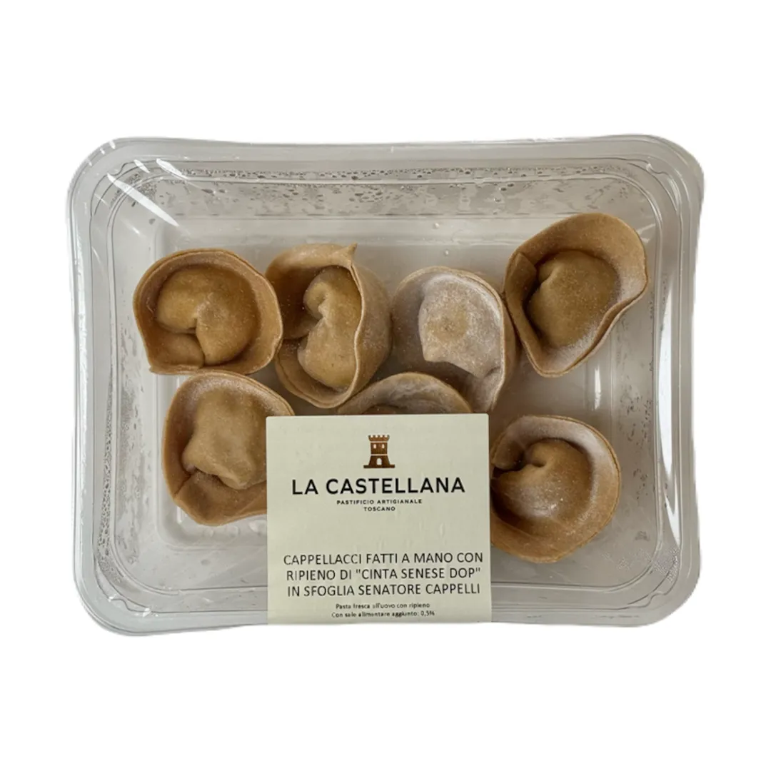 Cappellacci fatti a mano con ripieno di “Cinta Senese DOP” in sfoglia Senatore Cappelli 250g